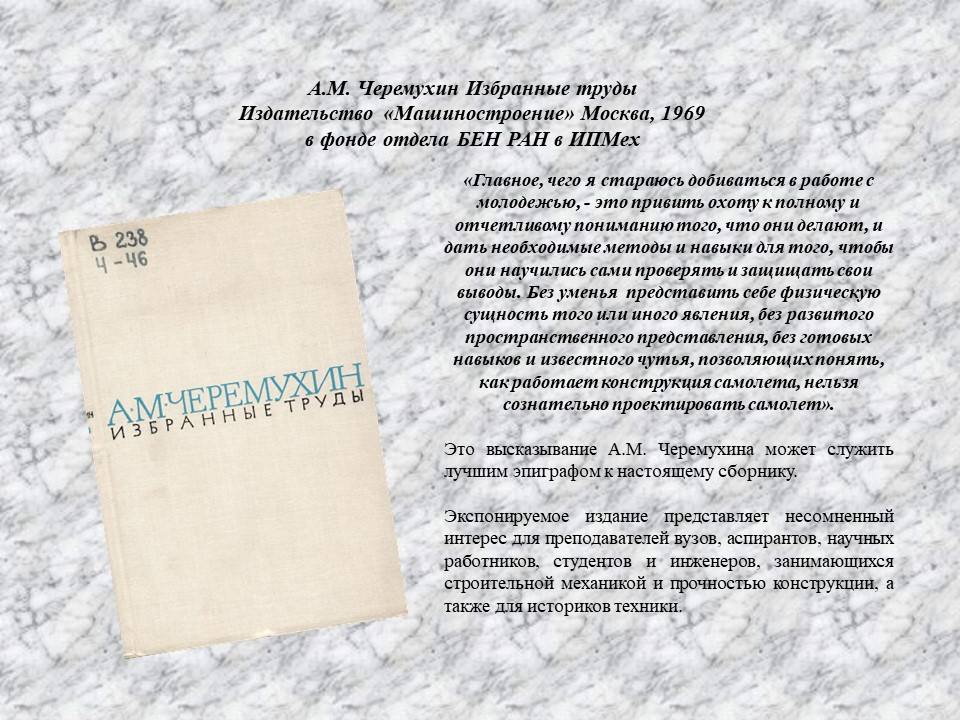 О библиотекеБиблиотека Института проблем механики им. А.Ю. Ишлинского РАН является отделом Библиотеки по естественным наукам РАН http://www.benran.ru. Библиотека создана в 1940 году. Основой фонда послужила литература, переданная из библиотеки Отделения технических наук, а также книги из частных коллекций ученых-механиков. До 1965 года библиотека ИПМех называлась библиотекой Института механики. Фонд библиотеки сегодня представляет собой уникальное собрание литературы по механике и смежным наукам и насчитывает около 140 000 печатных единиц, из них 50 000 – иностранные издания. В библиотеке имеются алфавитный и систематический каталоги, картотеки диссертаций и периодики, ретроспективная картотека трудов сотрудников института, ретроспективные тематические картотеки. Библиотека осуществляет информационно-библиотечное обслуживание сотрудников ИПМех РАН и сети институтов РАН, также студентов и аспирантов профильных вузов. Контакты